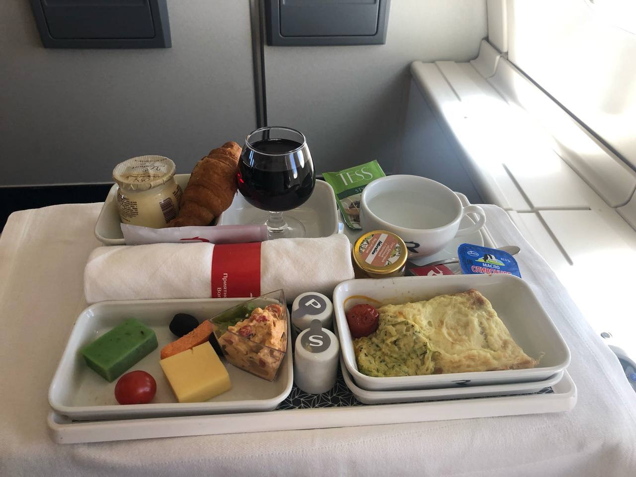 Но это не самый дешевый вариант. У "дочки" "Аэрофлота" иногда попадаются почти даровые. Перелет бизнес-классом а/к "Россия" в конце июня стоил 2,3 тыс. (на фото - питание на борту). Сейчас за такую цену можно найти билет только в эконом.