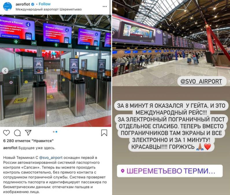 В "Шереметьево" работает автоматизированная система паспортного контроля "Сапсан" российского производства. Она проверяет паспорт и идентифицирует пассажира по биометрии: отпечаткам пальцев и изображению лица.
