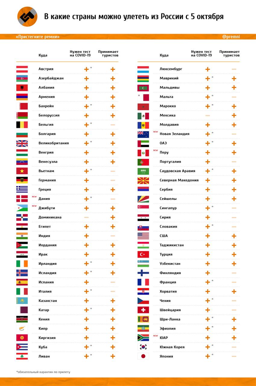 Список стран, с которыми Россия возобновила авиасообщение, пополнили еще пять: Новая Зеландия, Дания, Перу, Джибути и ЮАР.