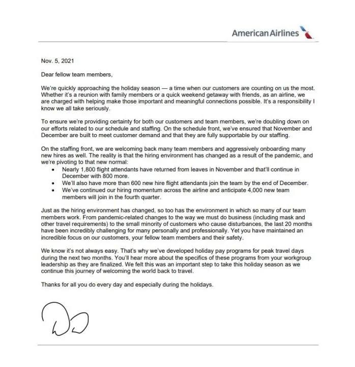 American Airlines ожидает, что в четвертом квартале к компании присоединятся 4 тыс. новых членов команды. К концу декабря авиакомпания наймет 600 новых бортпроводников. Почти 1,8 тыс. бортпроводников в ноябре вернулись из неоплачиваемых отпусков, в которые их отправили из-за пандемии, еще 800 возобновят работу в авиакомпании в декабре.