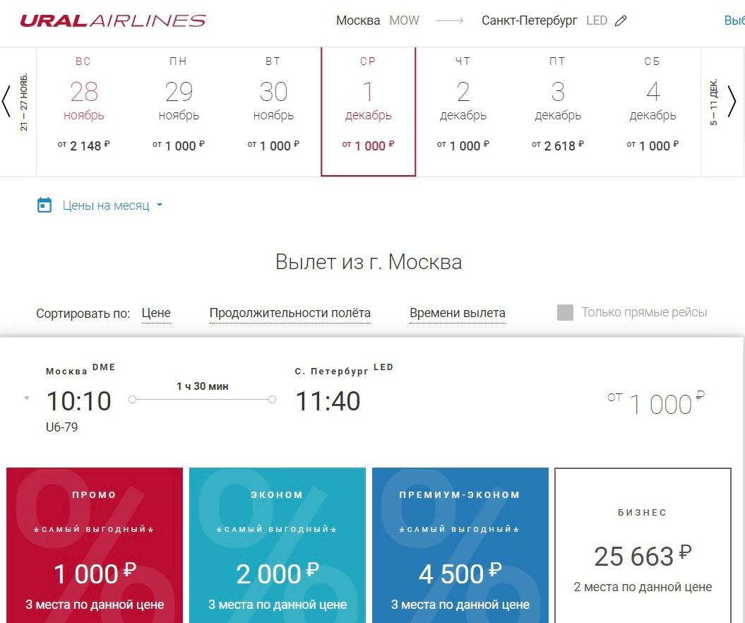 "Уральские авиалинии" снизили цены до 1 тыс. руб. (таким же было самое выгодное предложение на недавней распродаже "Победы").