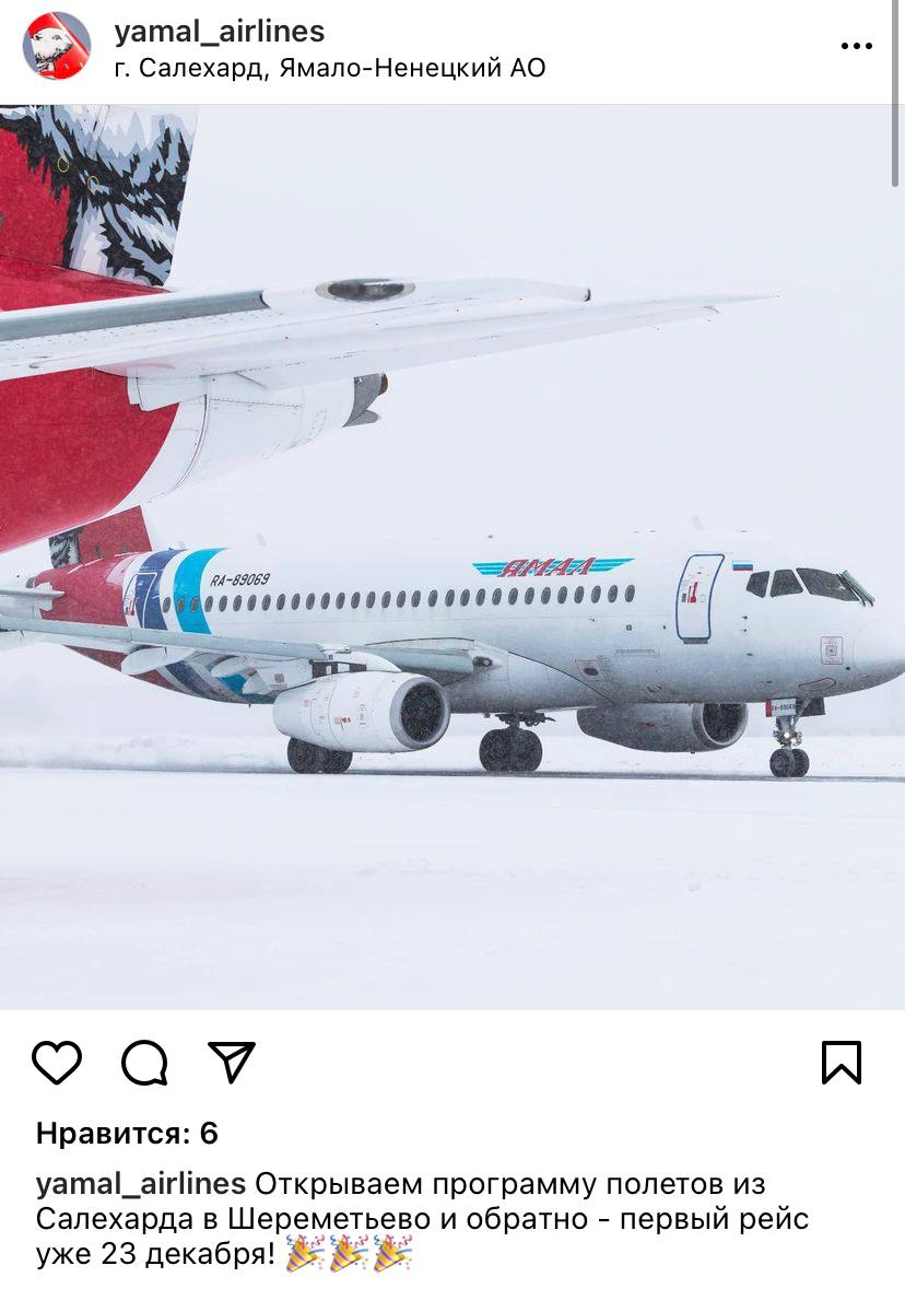 С 23 декабря "Ямал" начнет выполнять регулярные полеты по маршруту "Салехард - Москва - Салехард" из второго московского аэропорта - "Шереметьево". Сейчас перевозчик летает только в "Домодедово".