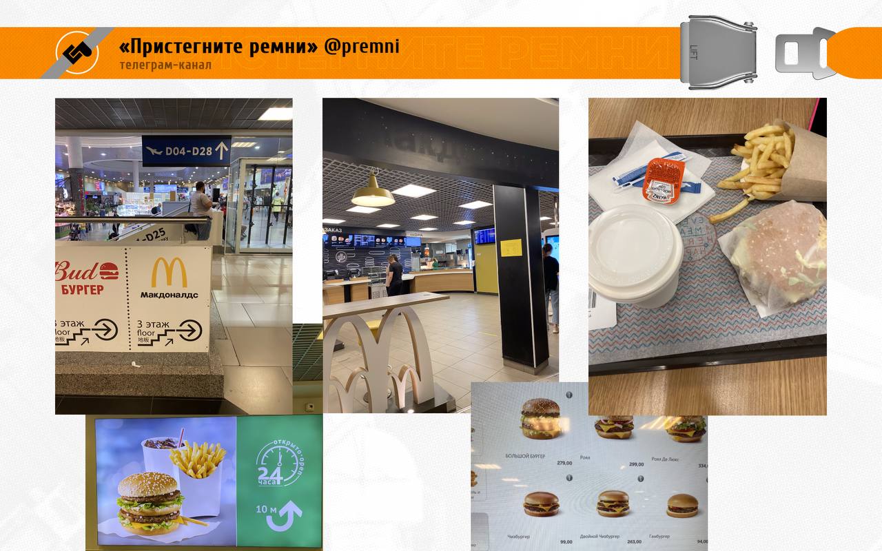 Не тут-то было. Даже там заведения уже лишились традиционной (и вообще какой-либо) айдентики. К примеру, в питерском "Пулково" на McDonald's указывает только одна вывеска, встречающая пассажиров в чистой зоне. Дальше всю связь с американским брендом постарались стереть: с упаковок еды, указателей. Над входом еще можно заметить следы старого названия.