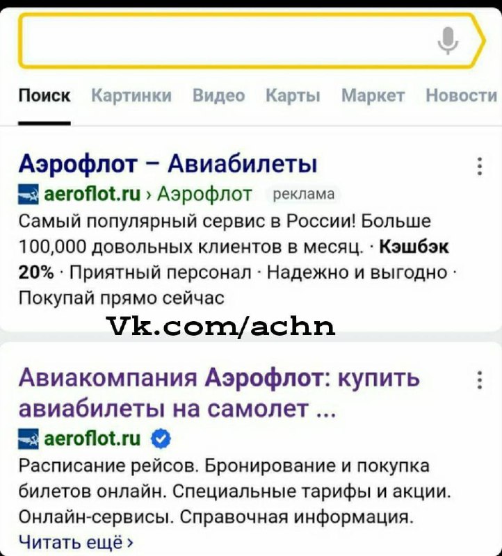 "Первый - это сайт мошенников (см. фото 1). Второй - "Аэрофлот". Я зашёл на 1-ый. Яндекс его рекламировал," - поясняет несостоявшийся пассажир.