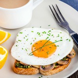 Время приготовления: 10 минут Ингредиенты: Багет - 15 см Сыр чеддер - 2 ломтика Яйца - 2 шт. Помидор - 2 большие дольки Базилик - несколько листочков Соль, перец - по вкусу Количество порций: 1 Как готовить: Разогрейте духовку до 175 градусов. Багет разрежьте…