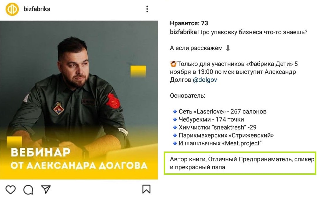 ФП сейчас активно продвигает вебинары некоего успешного новосибирского бизнесмена Александра Долгова, который на самом деле является лишь успешным продавцом невнятных франшиз, который научился «коучить» предпринимателей. Про него говорят, что в свое время работал, но не сработался с другим известным инфоцыганом Аязом Шабутдиновым, который пытался втуривать по всей России франшизу своего неработающего бизнеса Кофе.Лайк.