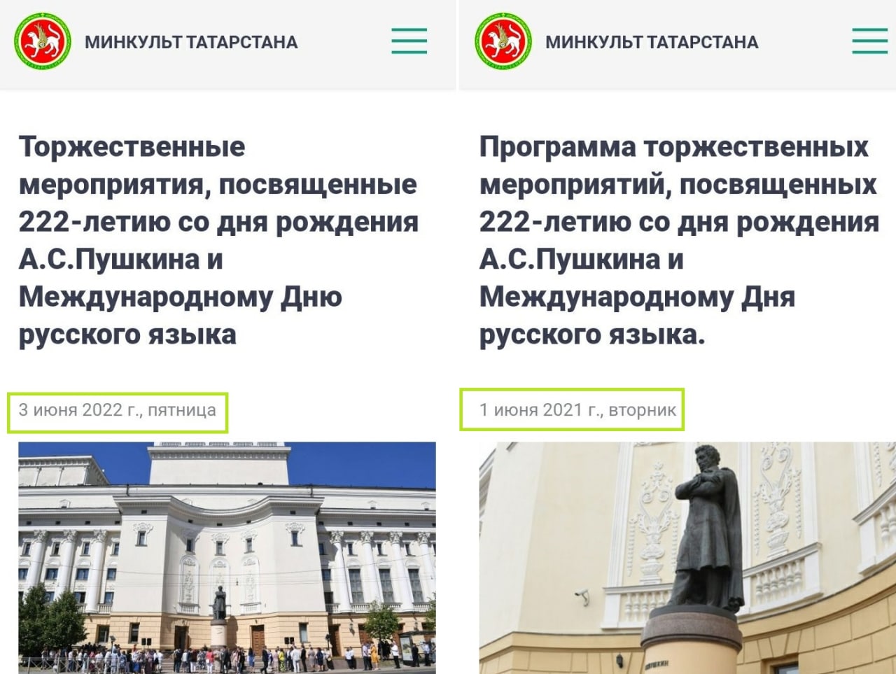 Минкульт Татарстана второй год подряд отмечает 222-летие со дня рождения Александра Пушкина.