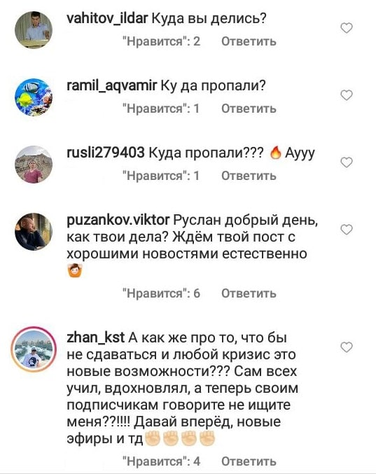 Интересно, как лухари-инфоцыган Руслан Абдулнасыров, еще зимой учивший всех жизни, бизнесу и как не сдаваться в сложной ситуации, совсем пропал вместе со своим успешным успехом.
