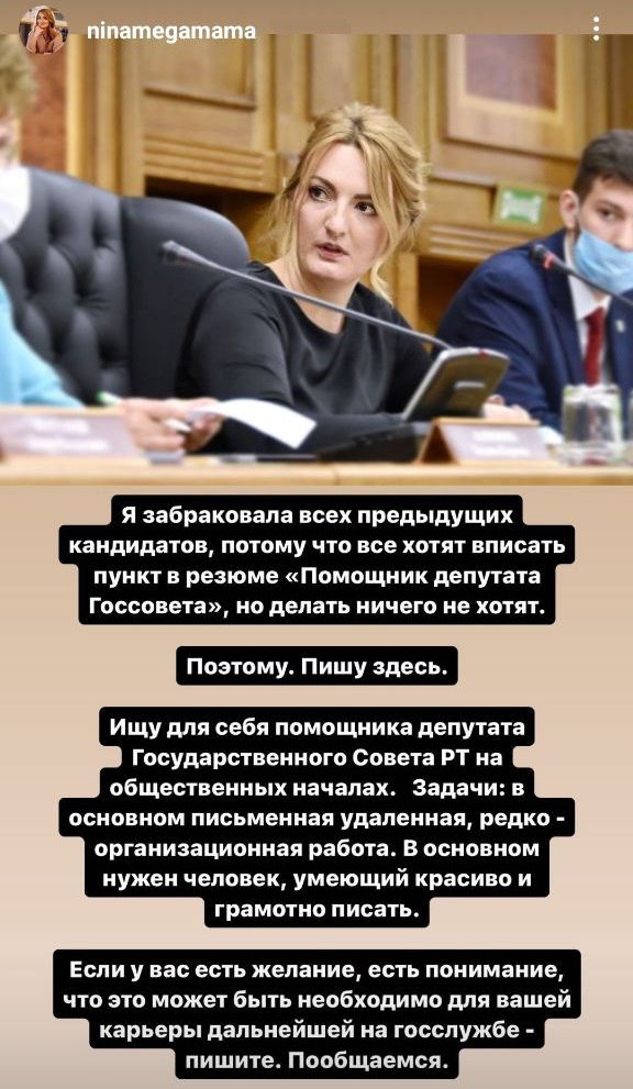 Председатель молпарламента РТ, а с недавних пор еще и депутат Госсовета Нина Шимина, негодует, что к ней в помощники на общественных началах идет неликвид.