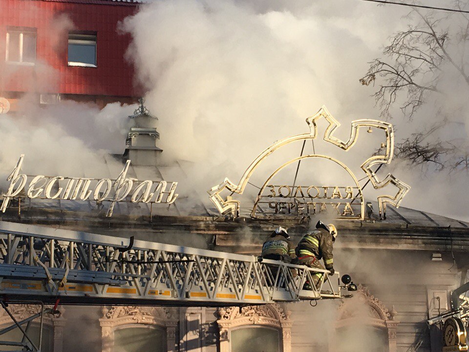 Сегодня утром сгорел, так что до сих пор тушат, памятник архитектуры на Володарского,9, более известный как ресторан «Золотая Черепаха».