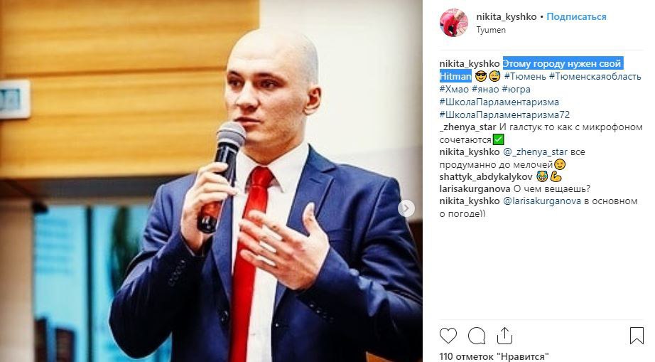 А вообще, некоторые вопросы по ситуации снимают соцсети господина Кышко. Он представлен в Инстаграм и Вконтакте, как минимум. В общем, понятно почему злодей с пистолетом оказался потерпевшим с черепно-мозговой травмой – ММА, «Уличные драки», Хабиб с Макгрегором, вот увлечения активиста партии Собчак. Себя он называет Хитмэном (персонаж-наемный убийца, если что), который нужен городу (WTF?).