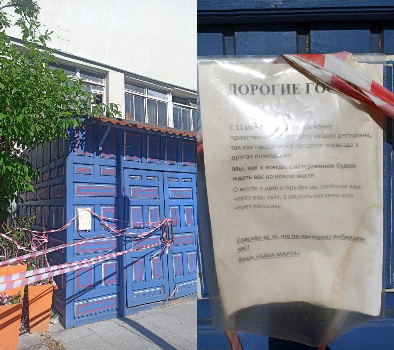 🚫 С 11 мая закрыт ресторан "Баба Марта" на Гоголевском бульваре, 8. Написано, куда-то переезжают. Ноооо знаем мы такие переезды. Ну, в любом случае, ждём.