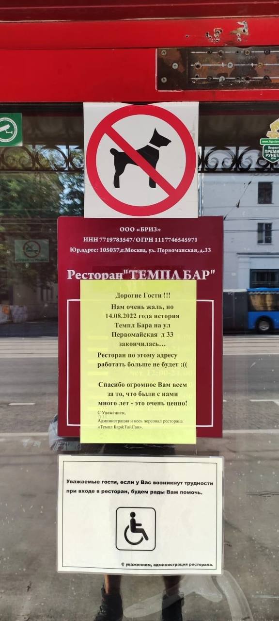 🚫 14 августа Temple Bar на Первомайской закрылся #навсегда. Говорят, там будет Пятёрочка. В сети осталось 3 бара.