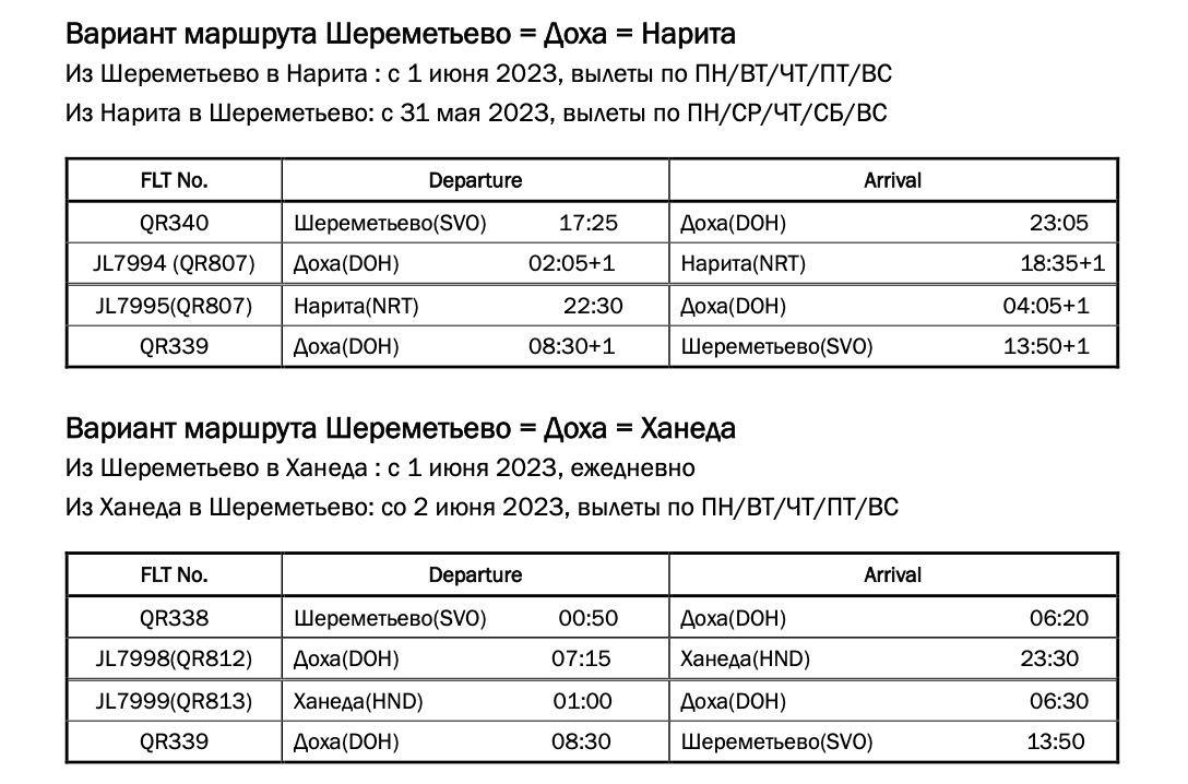 🛫🇯🇵 Japan Airlines (JAL) представила обновленную информацию о перелетах из Москвы в Токио в рамках код-шеринга с Qatar Airways