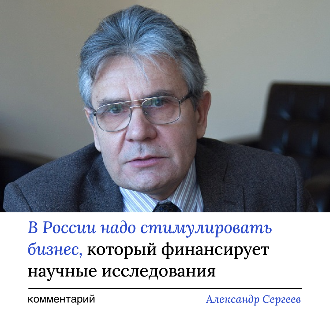 В России необходимо ввести меры стимулирования бизнеса, поддерживающего научные разработки, так как основное финансирование науки сейчас идет со стороны государства.