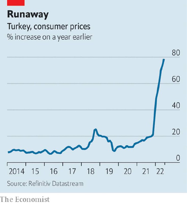 Инфляция в Турции вышла из-под контроля. Некоторые считают, что правительство занижает реальный показатель темпа роста потребительских цен. В конце июня группа исследователей подсчитала, что инфляция в стране составляет 160%. Это вдвое выше официального показателя — 79%. По данным опроса, 70% населения верят именно неофициальным цифрам.