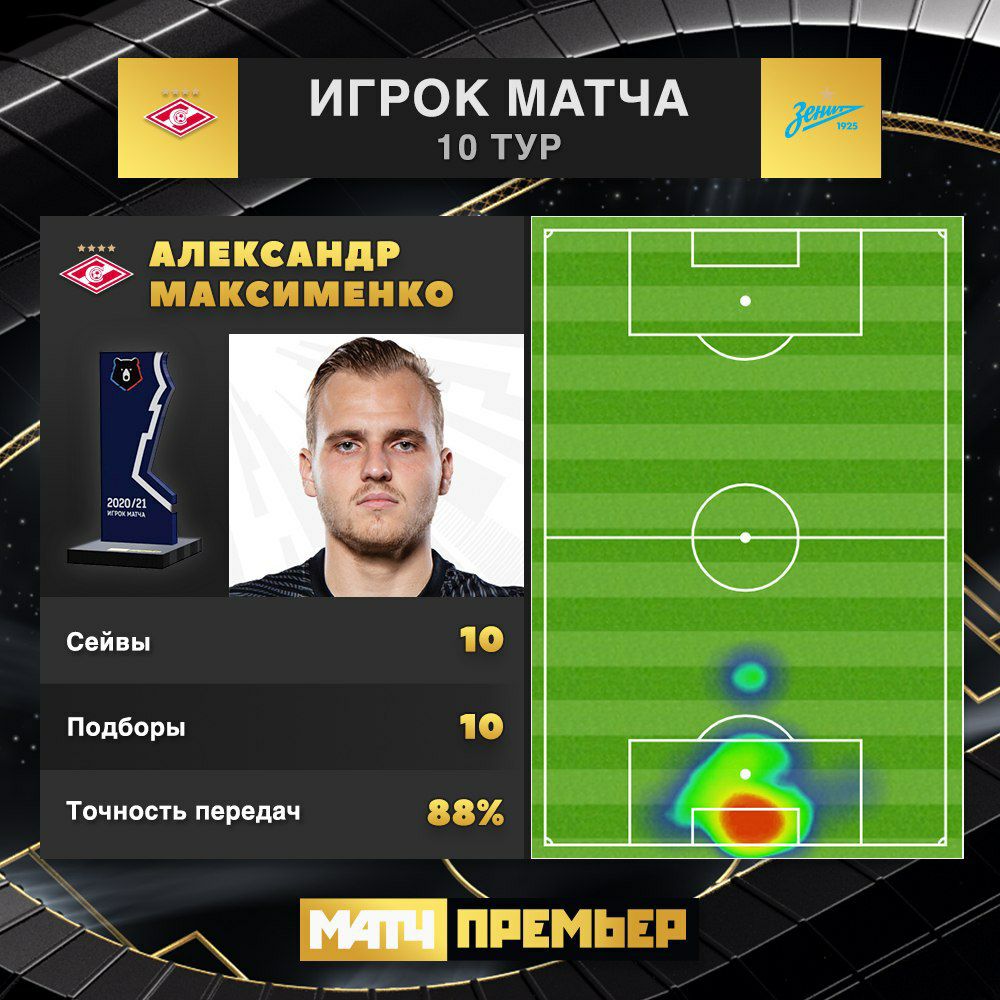 Исходя из карточки игрока матча с данными Opta, Максименко был лучшим на поле не только из-за своих сейвов. Александр показал феноменальную для вратаря точность передач – 88%. Это лучший показатель среди вратарей в этом сезоне РПЛ.