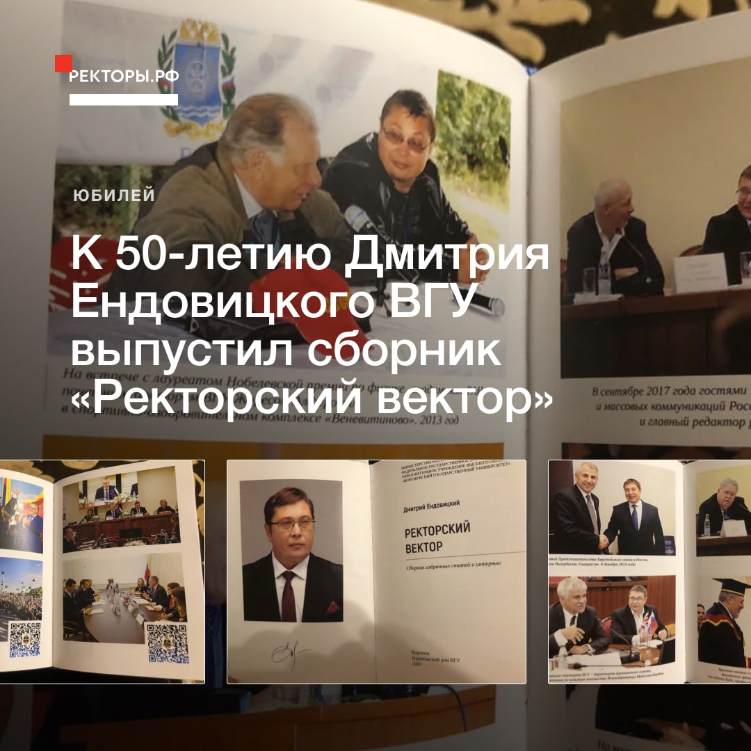 Издательский дом ВГУ выпустил сборник статей и интервью «Ректорский вектор» в честь 50-летия ректора Воронежского государственного университета Дмитрия Ендовицкого.