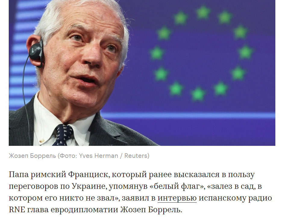 глава Евродипломатии Жозеп Боррель считает, что папа римский Франциск зашел не в ту дверь 😂