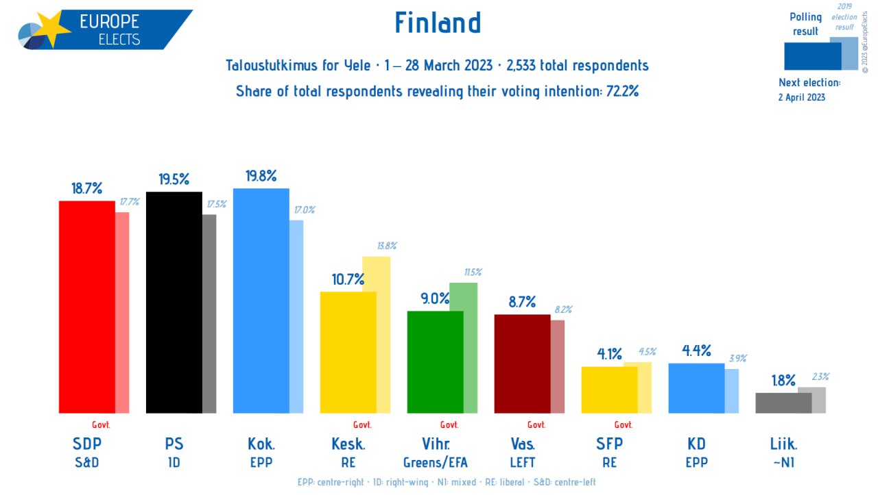 На последних всеобщих выборах в апреле 2019 года к власти пришел премьер-министр Антти Ринне, возглавивший красно-зеленую коалицию. Он продержался на посту менее шести месяцев и был заменен Санной Марин. Центральные темы: экономика, кризис стоимости жизни и приоритетные расходы для тех, кто придет в правительство.