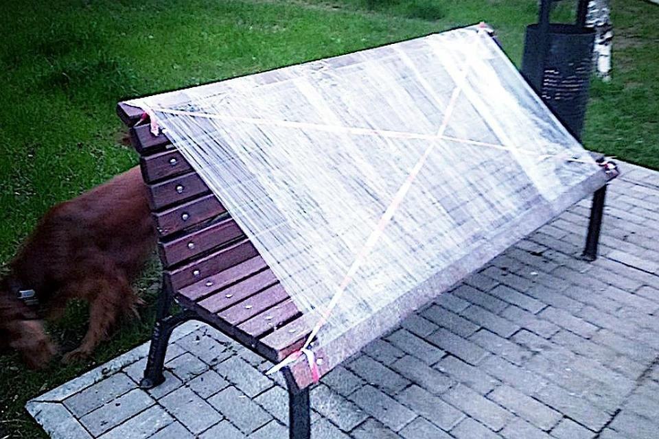 В одном из дворов Ростова-на-Дону лавку обмотали пленкой