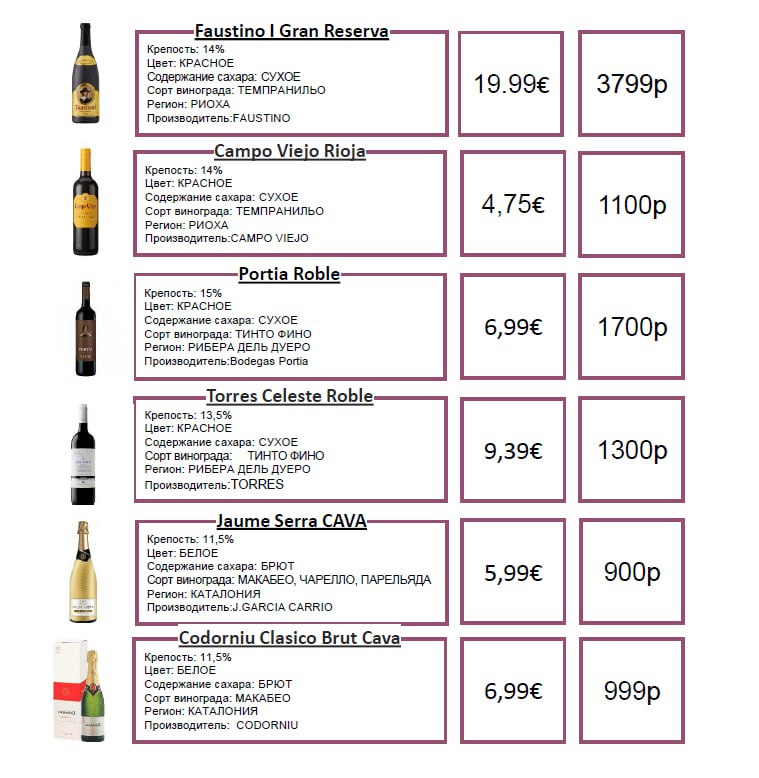 Поэтому сегодня мы решили отвлечься и сравнить цены на популярные бренды вина, представленные и на полках испанских супермаркетов, и в российских магазинах.