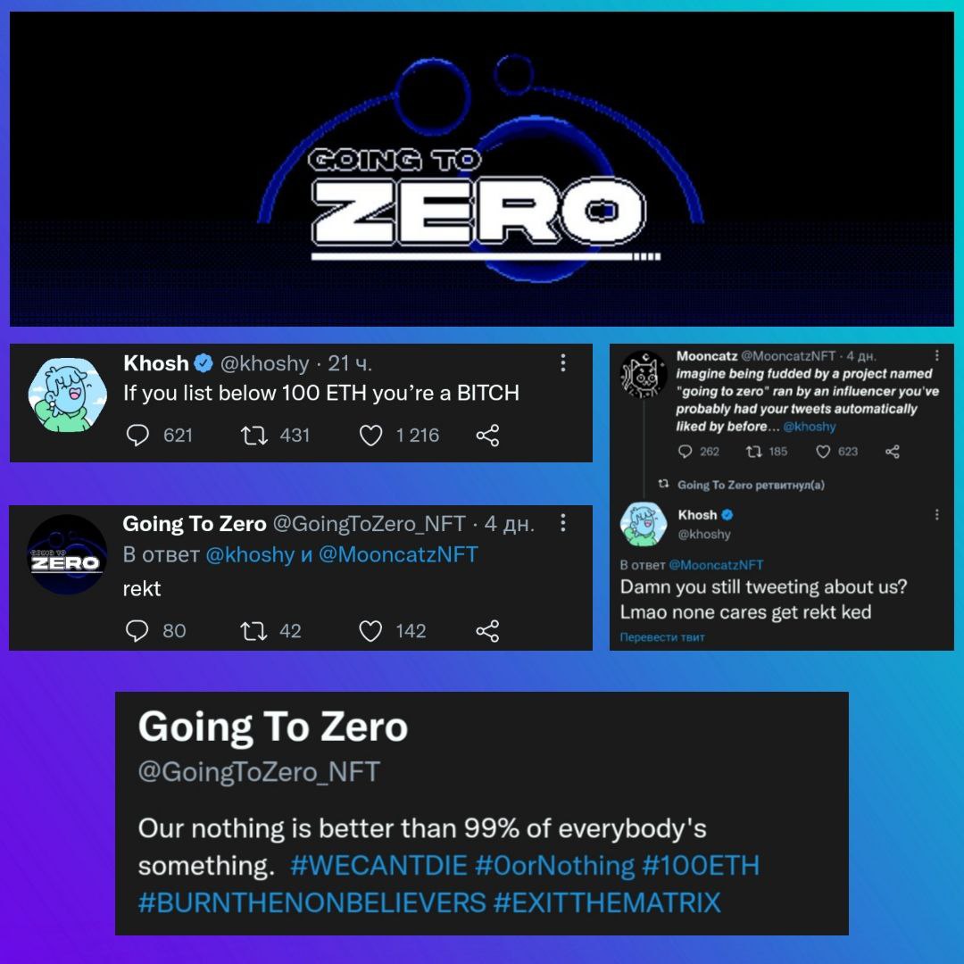 ▫️Going To Zero - эфир, ебейший бекграунд, оригинальное ведение твиттера и маркетинга, оч много умных денег следит за ними, кстати пост про этот проект я уже писал, возможно даже фриминт, но точно not your average