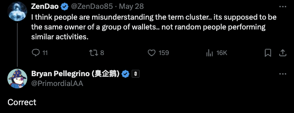 Что же мы можем сделать, чтобы отстоять справедливость? Ведь Браян сам говорил, что кластер это 1 человек-много адресов, а не просто адреса с похожими действиями (пикрл)