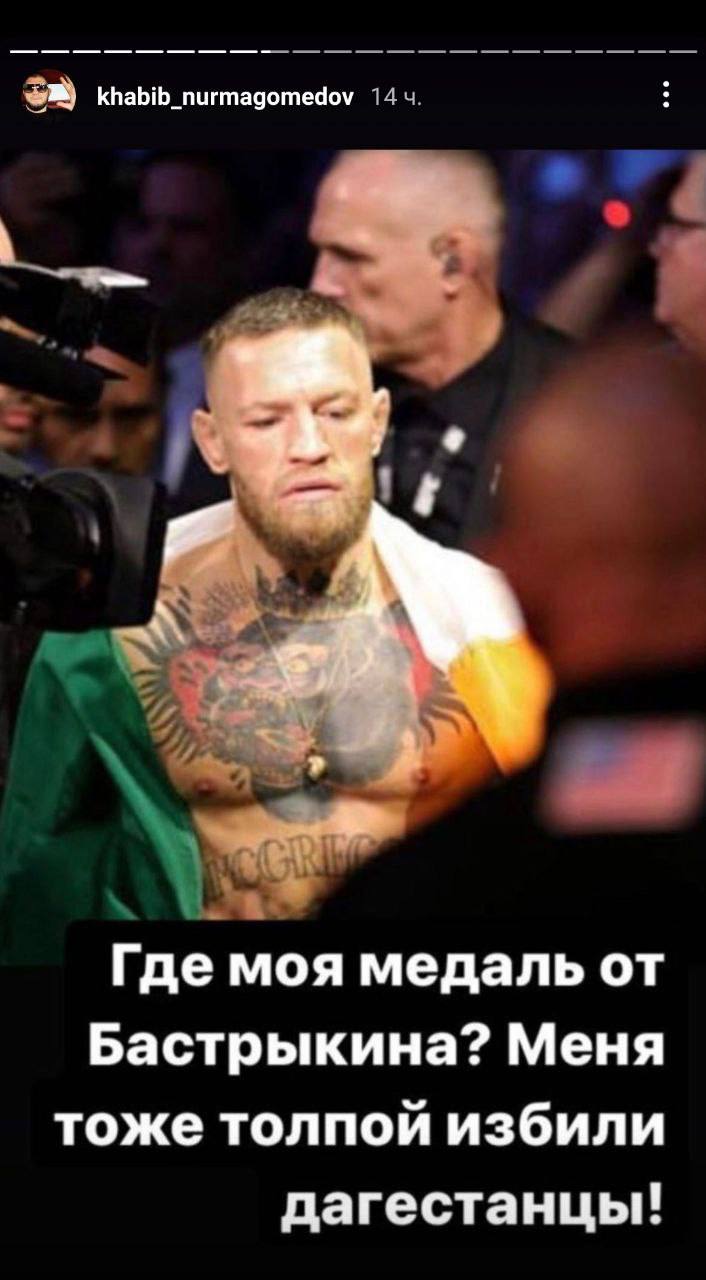 "У меня есть предположение, что это написал не сам Хабиб, а его пресс-служба постаралась. По крайней мере, хочется в это верить. Наверное, им показалось это смешным, но это, на самом деле, совершенно не смешно. Эта шутка абсолютно неуместная. Самого Хабиба наверняка сейчас спрашивают: «А ты бы смог так?». Получается, этой публикацией он высмеял не только Конора, но и мужчину, который заступился за девушку в метро и был избит. На мой взгляд, на такие темы лучше не шутить. Парень проявил настоящий героизм, смелость, многие прошли мимо, а он нет, поэтому и был награжден медалью."
