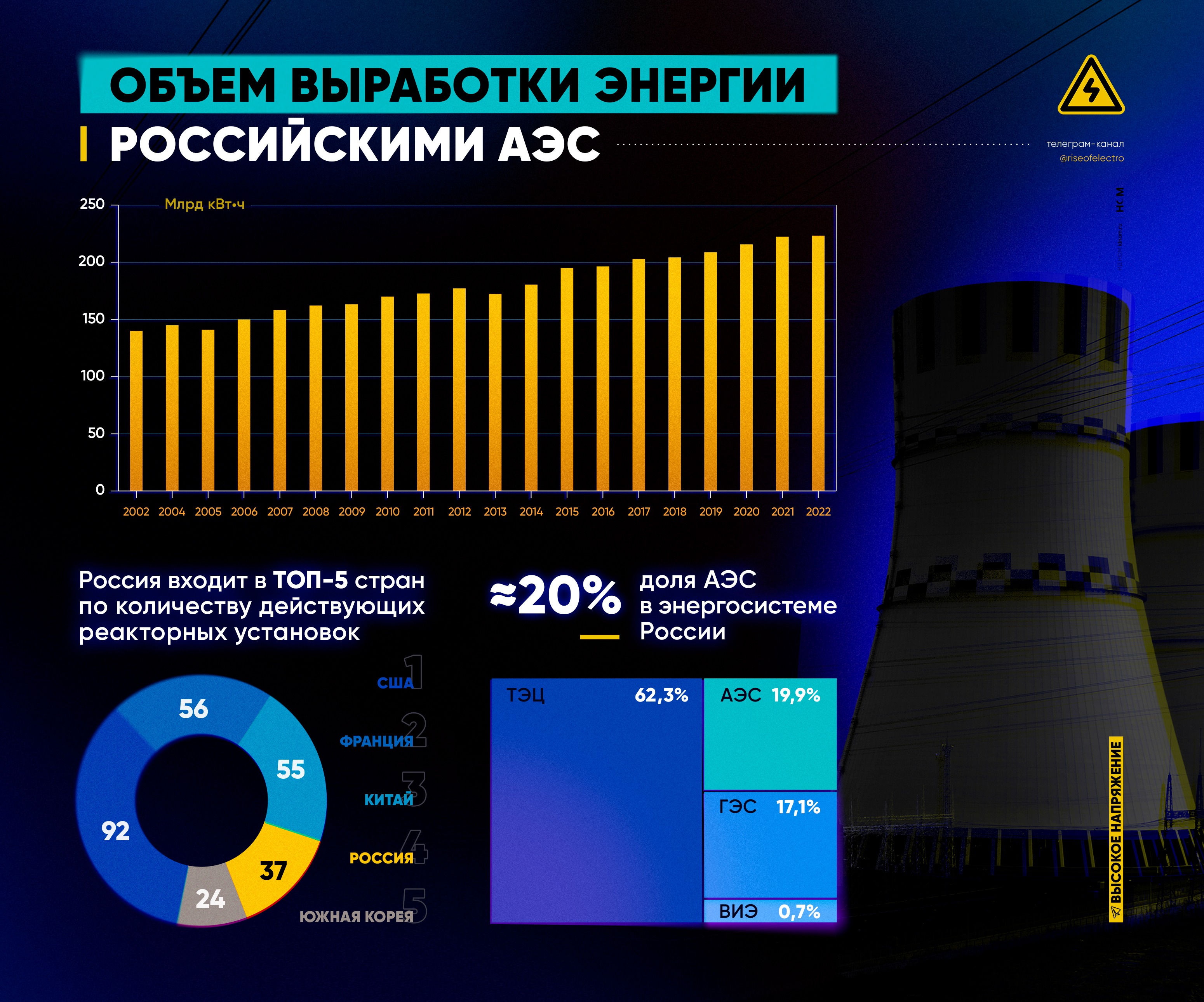 Практически сразу в 2008-м началось строительство Нововоронежской АЭС-2 и Ленинградской АЭС-2 по новому проекту "АЭС-2006" (реакторы ВВЭР-1200). В начале 2010-го завершили достройку Ростовской АЭС-2, в 2014 году – Ростовский АЭС-3. В 2016-м был принят в эксплуатацию энергоблок №4 Белоярской АЭС с реактором на быстрых нейтронах. В 2018-м заработал еще один энергоблок Ростовской АЭС и первый блок Ленинградской АЭС-2, а также запустили первую в мире плавучую атомную теплоэнергостанцию.