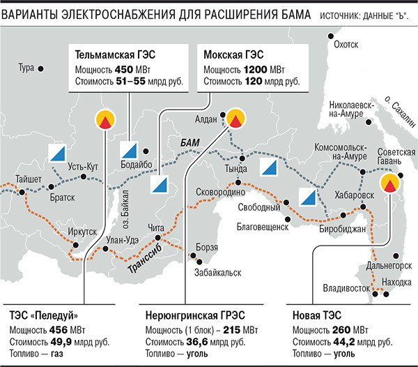 Дело в том, что нет спроса со стороны промышленников прилежащих к БАМу регионов, а для столь масштабного строительства новой генерации неполная загрузка выльется в колоссальные убытки. На чьи плечи в итоге они лягут, можно не гадать.