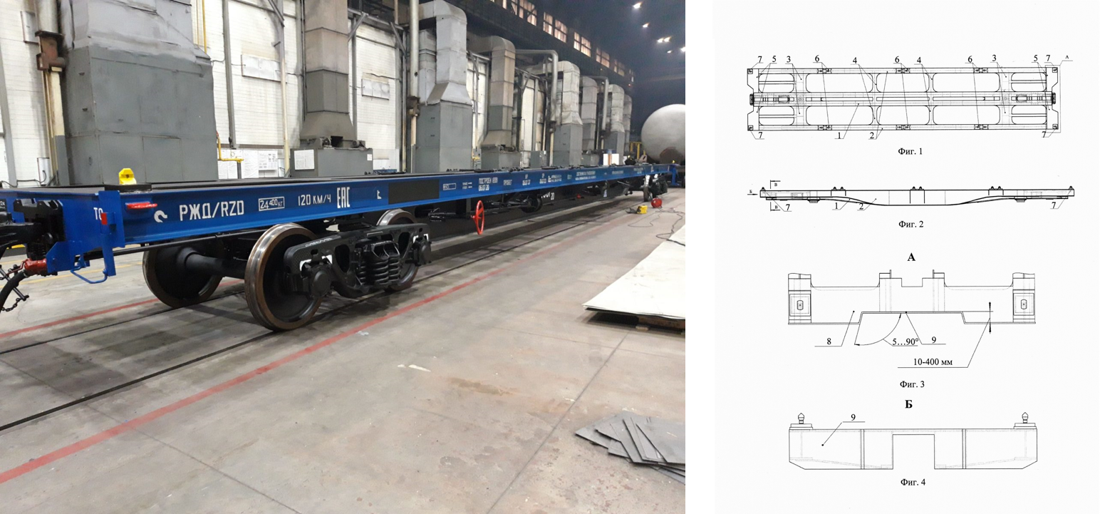 Фото: Слева - платформа 13-2162 от «Алтайвагона», справа - вариантов исполнения рамы вагона-платформы, запатентованный «Рузхиммашем»