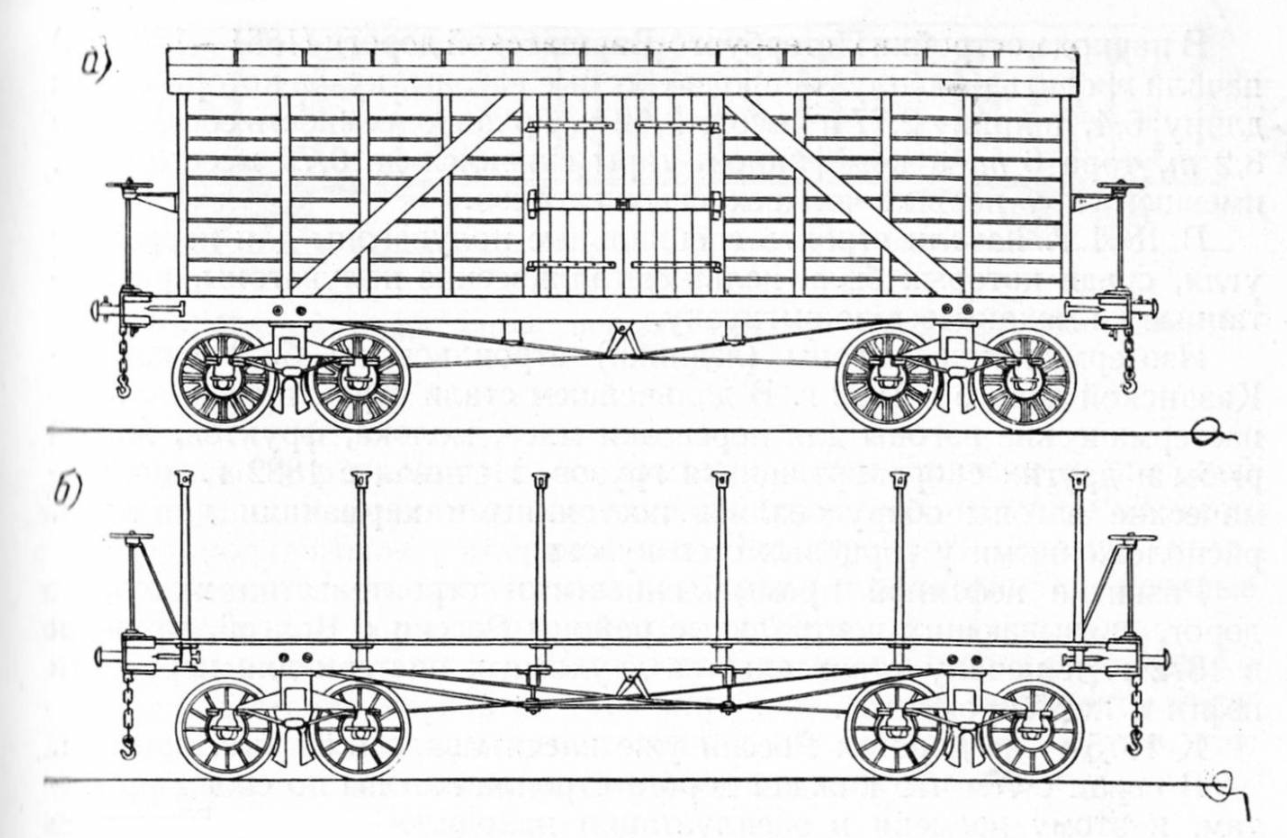 Техническая комиссия при Департаменте железных дорог определила тип и конструкцию вагонов, отдав предпочтение четырехосным вагонам, которые по сравнению с двух- и трехосными при одинаковом объеме кузова представляли меньшую опасность при изломе оси, были более устойчивыми и меньше расстраивали путь. Комиссия установила, что грузоподъемность товарных вагонов должна быть до 8 т, диаметр колес 914 мм, а сделаны они из термообработанного чугуна повышенной твердости.