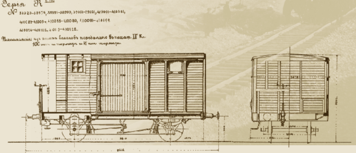 Иллюстрация: Чертеж нормального товарного вагона с тормозной площадкой