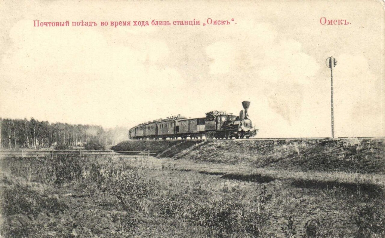 Иллюстрация: Открытка с почтовым поездом во время хода близ станции Омск