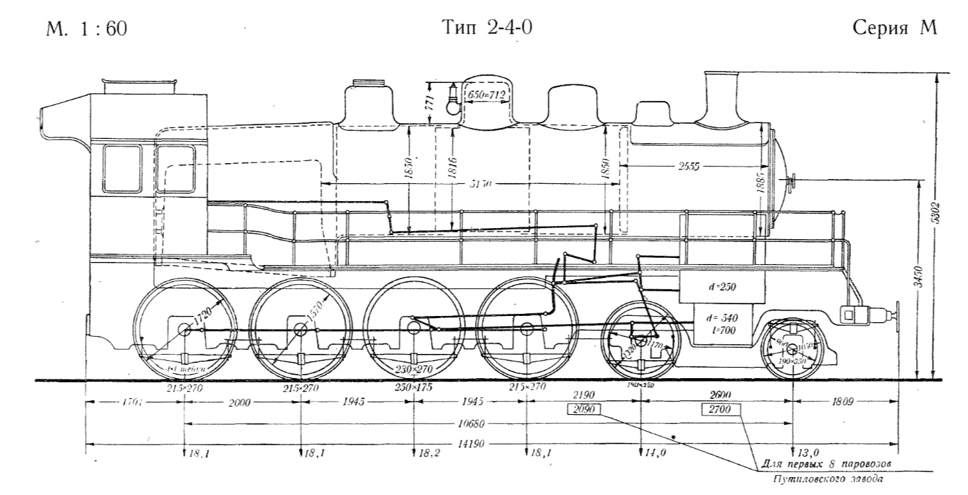 Иллюстрация: Чертеж паровоза серии М, из Альбома схем паровозов и паспортов НКПС СССР, 1935 год
