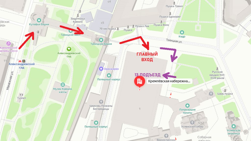 Вход в здание ГКД для представителей СМИ осуществляется через 13 подъезд (мимо главного входа в ГКД пройти вперед и повернуть направо). Там же можно получить бейдж "СМИ".