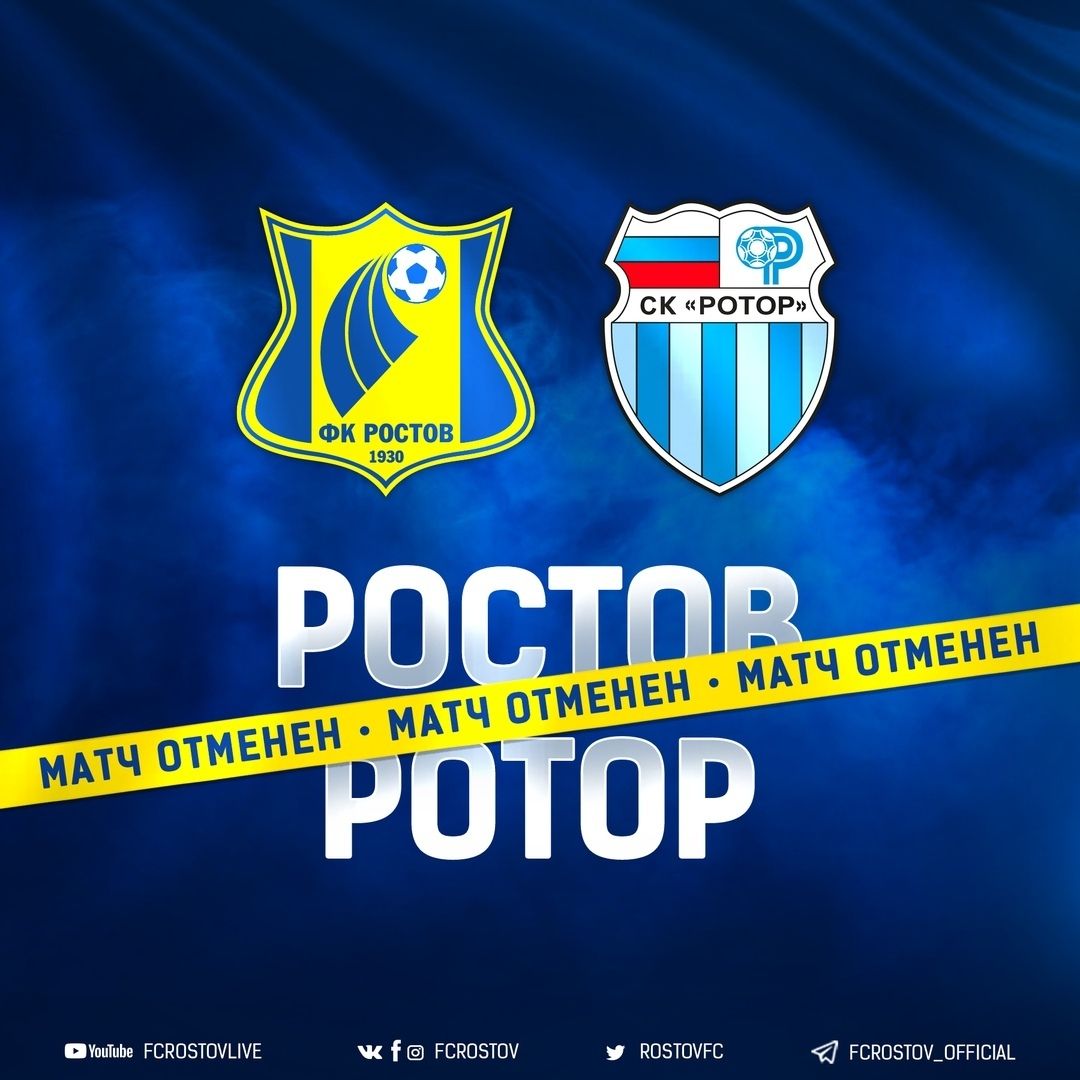 Матч между ФК «Ростов» и волгоградским клубом «Ротором» отменили из-за коронавируса.