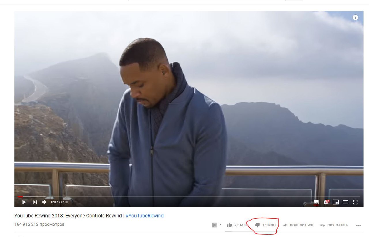 Привыкнув видеть среди своей паствы ободряющую толпу, внезапно сделали для себя открытие, что их тоже могут яростно критиковать. Достаточно заглянуть на ежегодное видео YouTube Rewind, рассказывающее о главных событиях видеохостинга в ушедшем году, и увидеть чудовищные 15 млн отметок «мне не нравиться» при 160 млн просмотрах, т.е. дизлайкнул практически каждый десятый это рекорд.