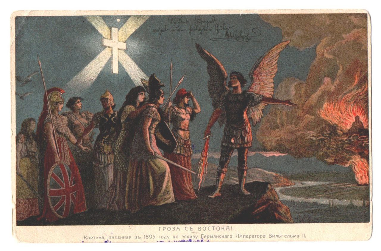 Илл.: рисунок немецкого художника Г. Кнакфуса, выполненный в 1895 г. по эскизу Вильгельма II и подаренный кайзером Николаю II.