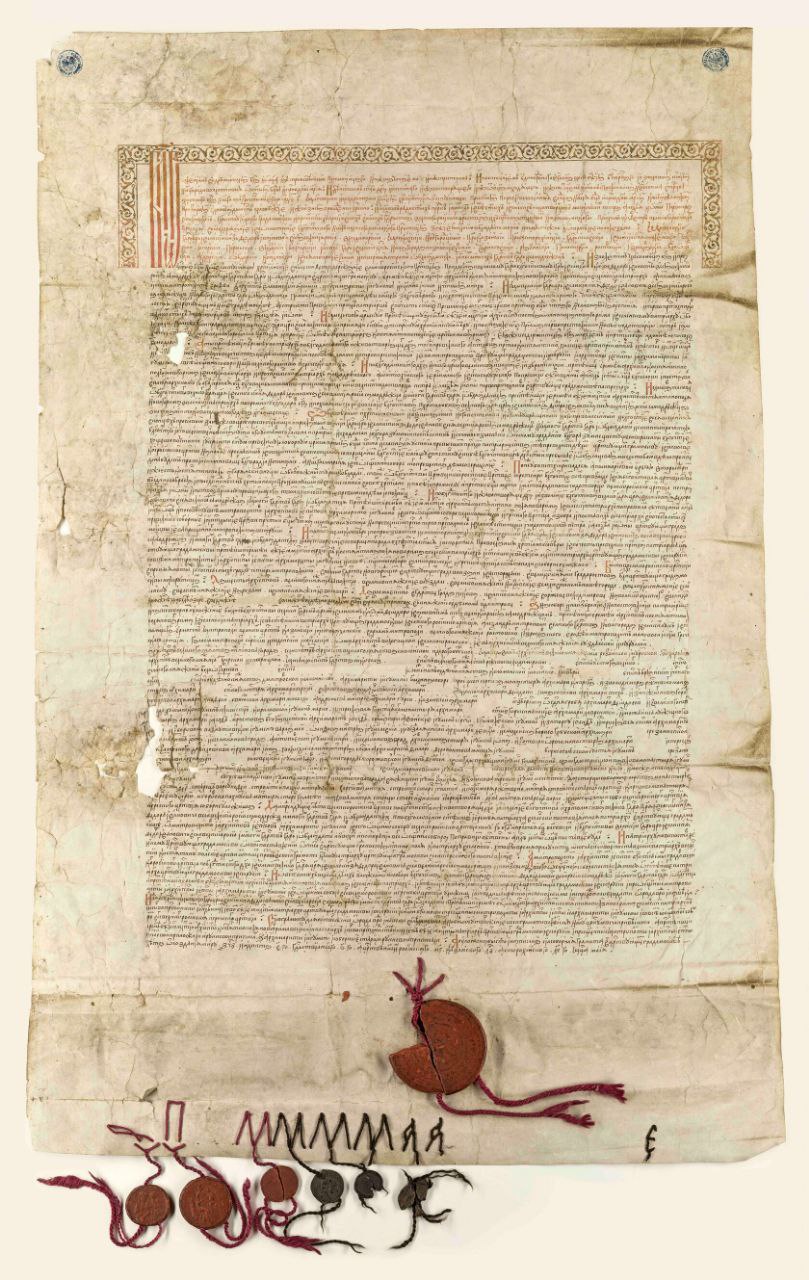 "...Мы, великий государь царь и великий князь Федор Иванович всея Великия Росии самод(е)ръжец и многих государств государь и обладатель, помыслив о сем превеликом деле с нашею з благоверною и со христолюбивою царицею великою кня(г)инею Ириною, чтоб з Божиею помощию и пречистыя Богородицы милостью в царствующем нашем граде Москве устроити превеликий престол патриарш.