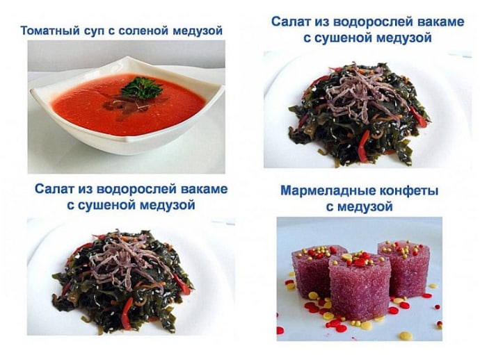 Оказалось, что белки медуз содержат аминокислоты, в том числе незаменимые, кроме того, человеческий организм может получить из них железо, цинк, марганец, натрий, калий, кальций, магний, селен и другое.