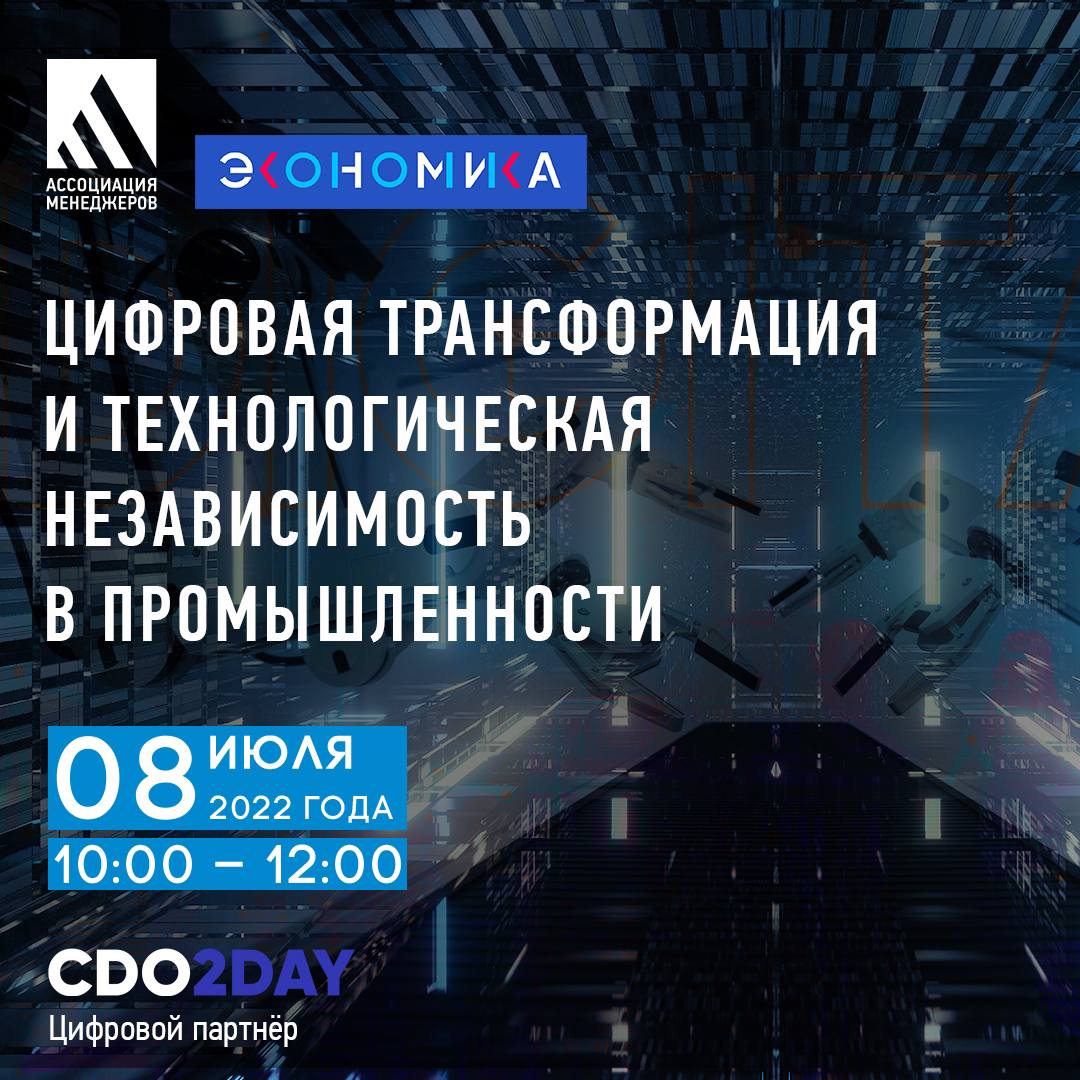 8 июля состоится круглый стол Ассоциации менеджеров совместно с АНО «Цифровая экономика» на тему «Цифровая трансформация и технологическая независимость в промышленности».
