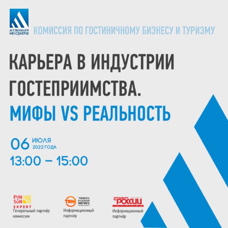 6 июля состоится заседание Комиссии по гостиничному бизнесу и туризму Ассоциации менеджеров на тему «Карьера в индустрии гостеприимства. Мифы VS реальность».
