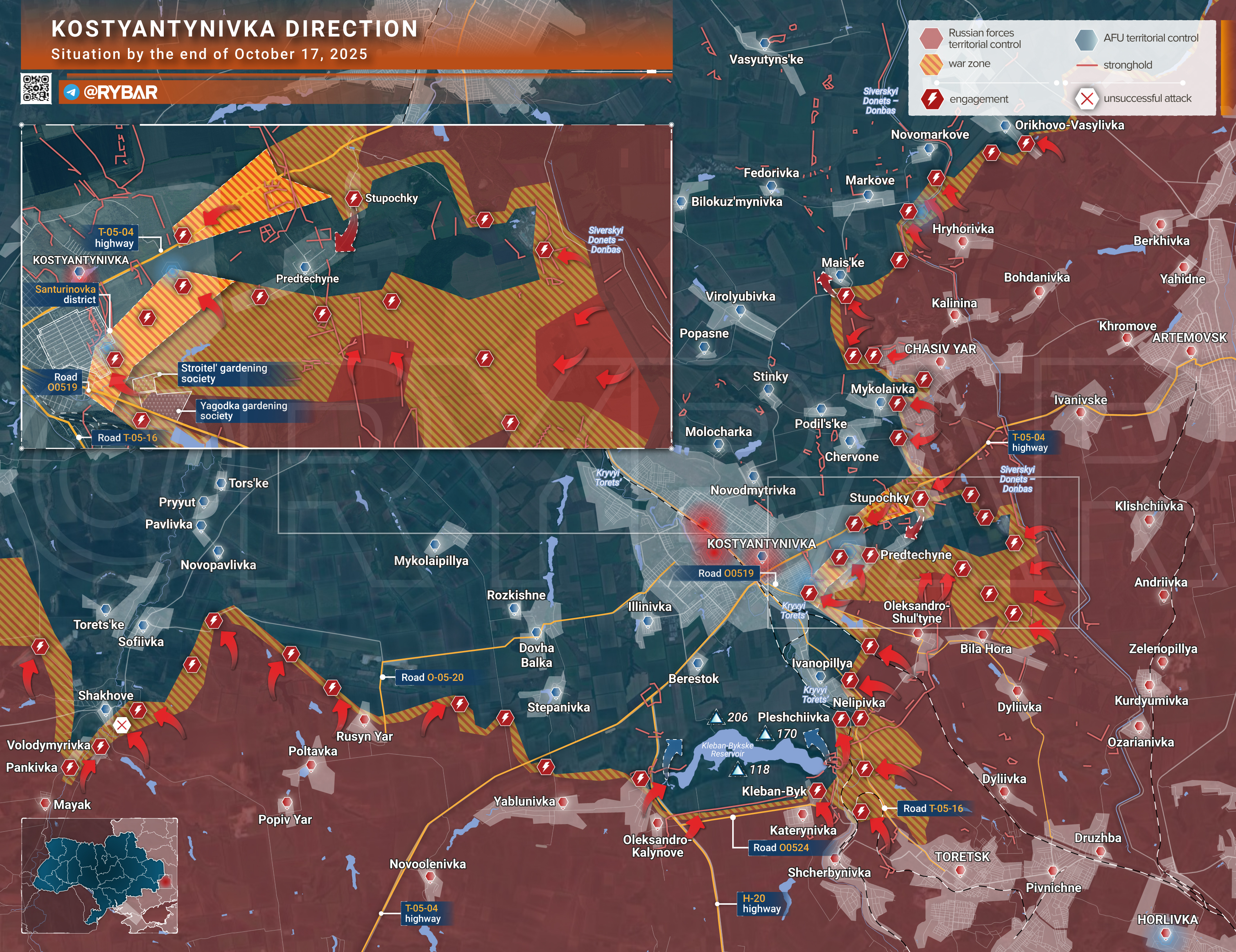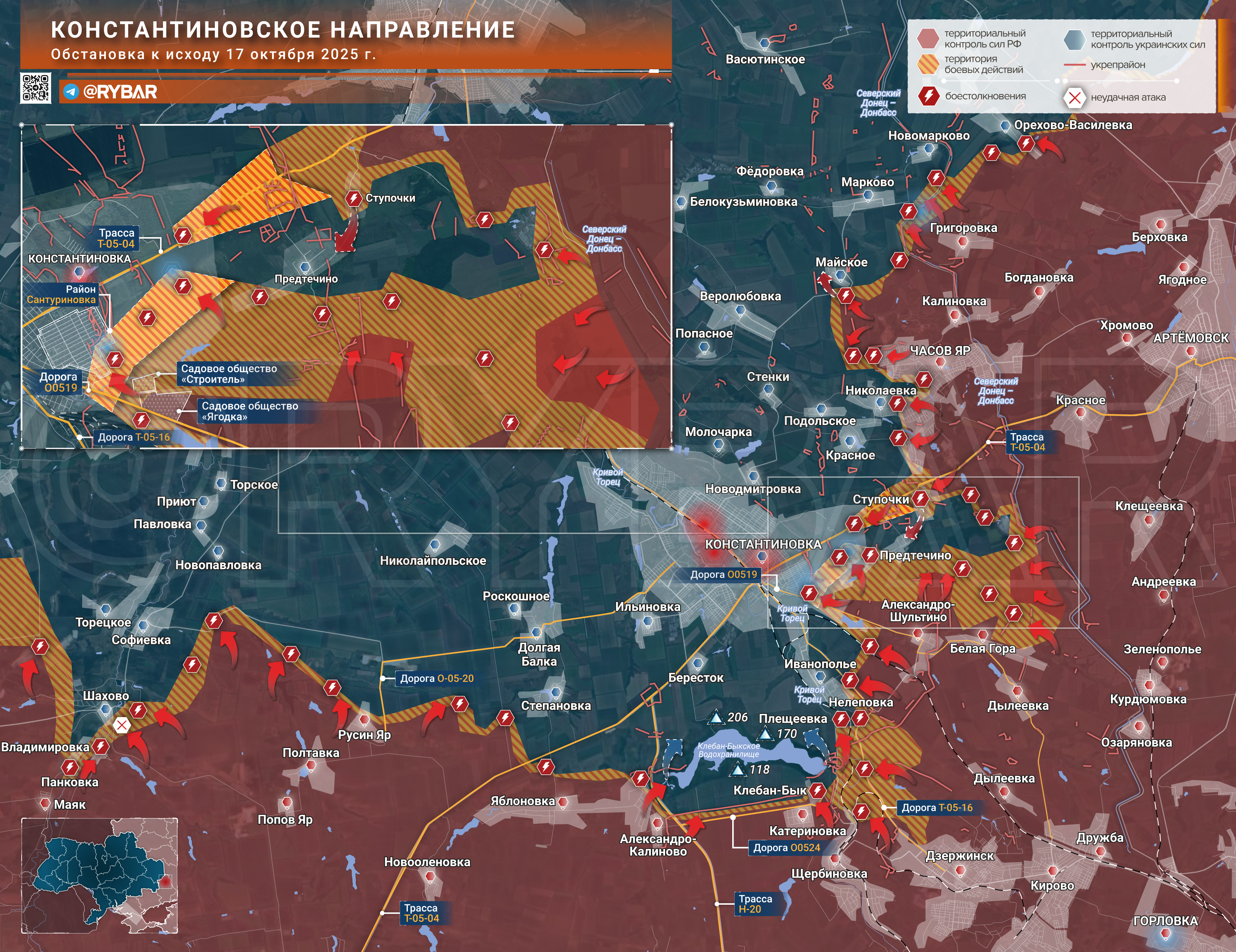 🔸Константиновское направление (ru; en)📍 Онлайн-карты доступны по подписке на map.rybar.ru