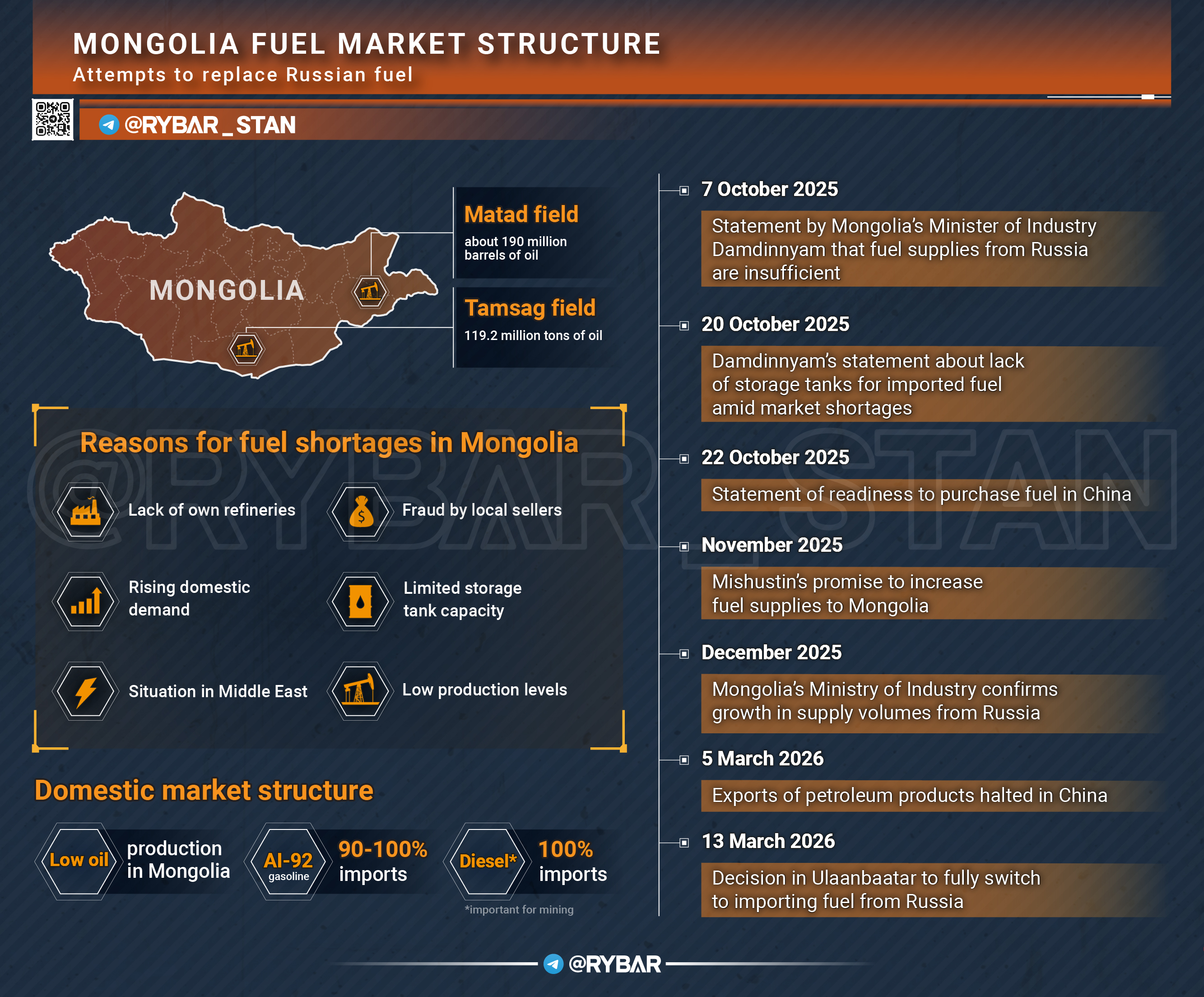 Запрет властей Китая на экспорт нефтепродуктов родил дополнительный спрос в Монголии, который будет полностью покрыт сырьём из России.