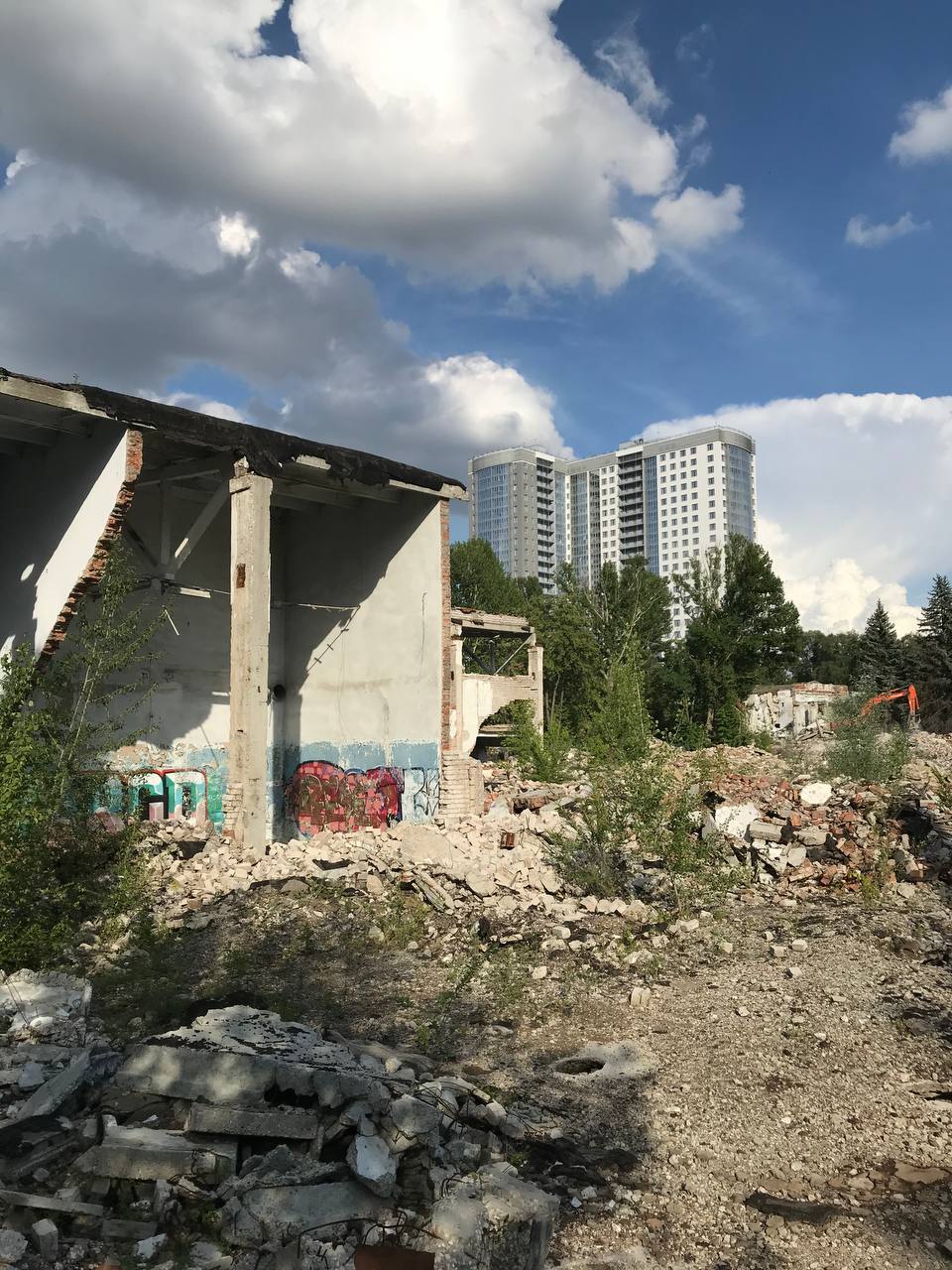 В Управлении капитального строительства утверждают, что никаких подготовительных работ на участках с кадастровыми номерами 2830 и 2831, находящихся на территории ЗИМа, не ведётся, но на фото, сделанных неделю назад, на площадке видна строительная техника и рабочие, разбирающие заводские цеха.