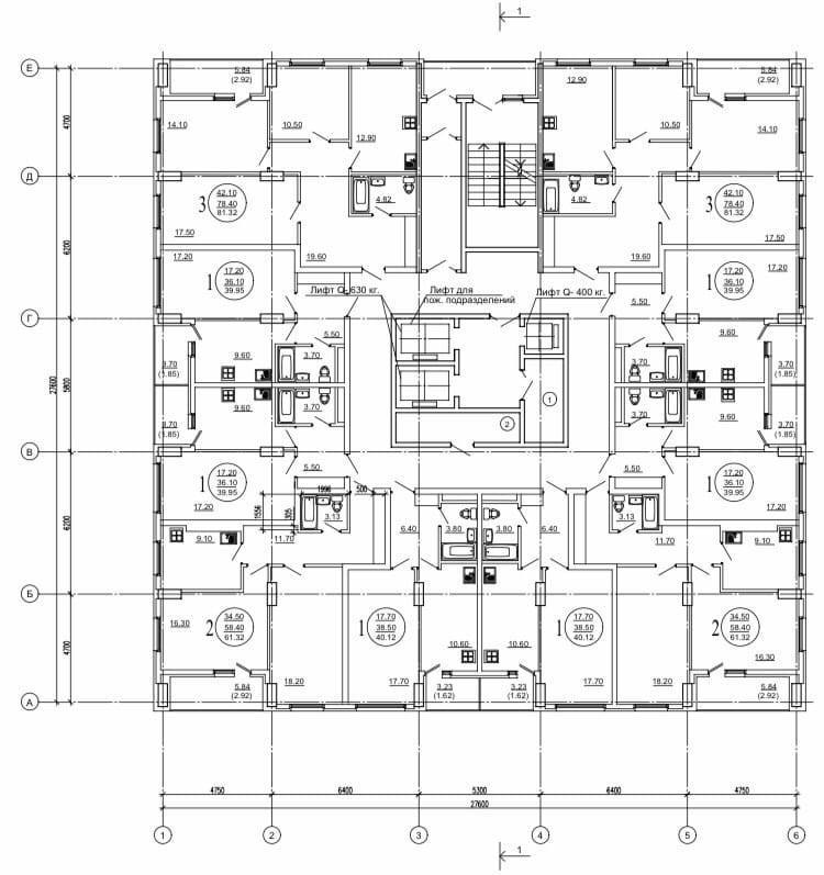 2-комнатных 47 шт, площадь от 63 до 84 м2;