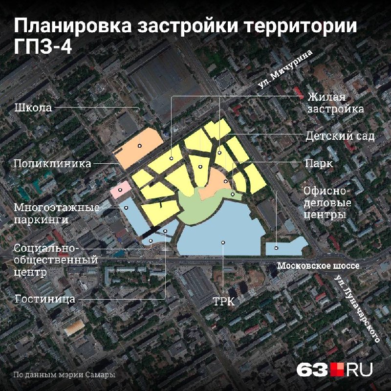 Коллеги из 63ru опубликовали инфографику - план застройки территории бывшего завода ГПЗ-4 группой компаний «Новый Дон»: жилая застройка, торгово-развлекательный комплекс, новая школа на ул. Мичурина.