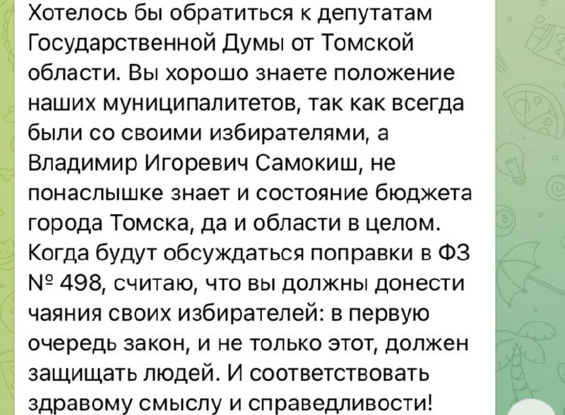 Поэтому сегодня обратился к и.о. Мэра Томска и Губернатору области. Надеюсь на быструю реакцию.